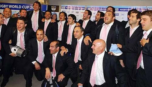 De traje. Los «hinchas» y los rugbiers, vestidos con impecables trajes negros y camisas blancas, saltaban y cantaban al unísono, mientras hacían flamear banderas argentinas por doquier.