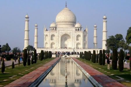 Este inmenso mausoleo se construyó bajo las órdenes de Shah Jahan, el quinto emperador mogul musulmán, en memoria de su amada y última esposa. Construido con mármol blanco en medio de extendidos jardines, el Taj Majal se considera la joya más perfecta de arte musulmán en la India. El emperador fue encarcelado posteriormente y, se dice, que sólo podía ver el Taj Majal desde la pequeña ventana de su celda.