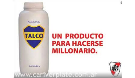 Uno de ellos muestra un frasco de talco con el escudo de Boca y debajo afirma: «Un producto para hacerse millonario».