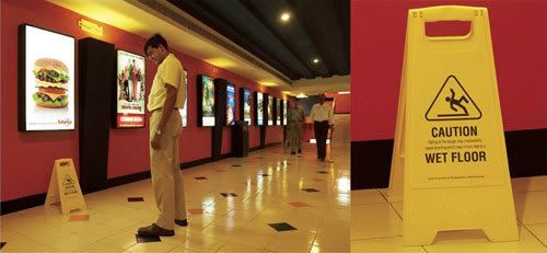 Una original idea para promover la marca de hamburguesas “Eatalica burgers”. La publicidad utiliza un cartel ubicado debajo de una foto de sus hamburguesas y dice «CUIDADO piso húmedo» en el medio del cartel hay una aclaración: «Las hamburguesas causan un babeado involuntario que provoca que el suelo esté húmedo. Publicado para su seguridad por la administración de Eatalica restaurant”. Eatalica es un restaurant americano-italiano en Chennai, India.
