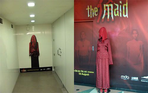 Esta publicidad fue vista en un cine de Singapur. Utilizaron un plotter de tamaño real de la película de terror «La Dama», antes de llegar al baño y luego en la puerta del mismo, el mensaje dice “El tipo de película que te hace orinar en los pantalones”.