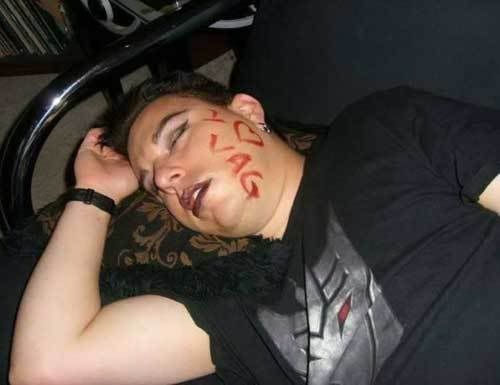 Una de las tantas características de la gente que se toma hasta el agua de los perros es que se duermen y no se despiertan con nada, y en esos momentos es cuando aparecen los “amigos” chistosos y aprovechan para hacer sus gracias. Estas imágenes hablan por sí solas lo único que se puede decir es “Tremenda borrachera”.
