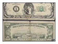 Mira que podes falsificar billetes de 500 euros, que son los más caros (hasta donde yo se) y la gente sospecharia menos, pero no. En norteamerica (¡que boludaso!) un hombre ha sido encarcelado por intentar usar en un supermercado un billete de 1.000.000 de dólares.
