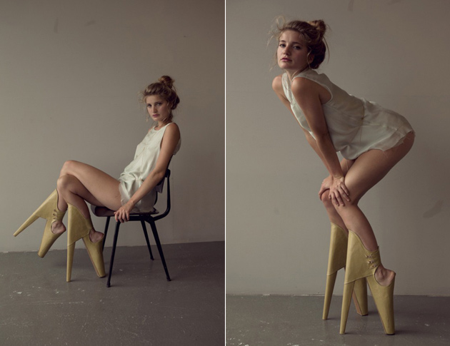 En el sitio Fashionably geek encontré una nota que muestra los zapatos más raros que vi en mi vida, y no solamente son raros en su forma, si no que aparte no te permiten caminar erguido debido a la forma en que se agarra al pie. Como lo dice el titulo estos zapatos a mi entender hacen que la mujer cuando camine parezca un zombi que anda a la deriva. Miren el video y dejen sus comentarios!